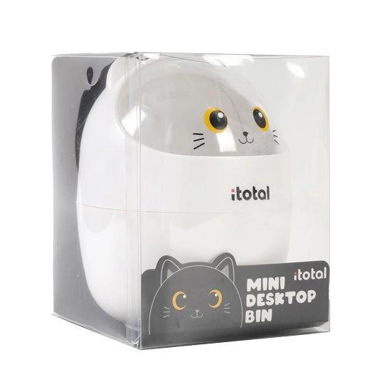 Denne hvide katte mini-spand er designet til dagligt småaffald – papirlapper, tyggegummiindpakninger eller vatpinde. Takket være de kompakte mål 16 × 16 × 12 cm passer den på ethvert bord uden at optage værdifuld plads. Det minimalistiske design med en sød katteface frisker dit arbejdsområde op og støtter orden.