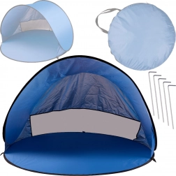 Dette selvopslående strandtelt i blå farve giver dig ro, privatliv og beskyttelse mod vind og skarp sol. De generøse XL-mål skaber et komfortabelt område til afslapning, omklædning eller som læ for vinden.