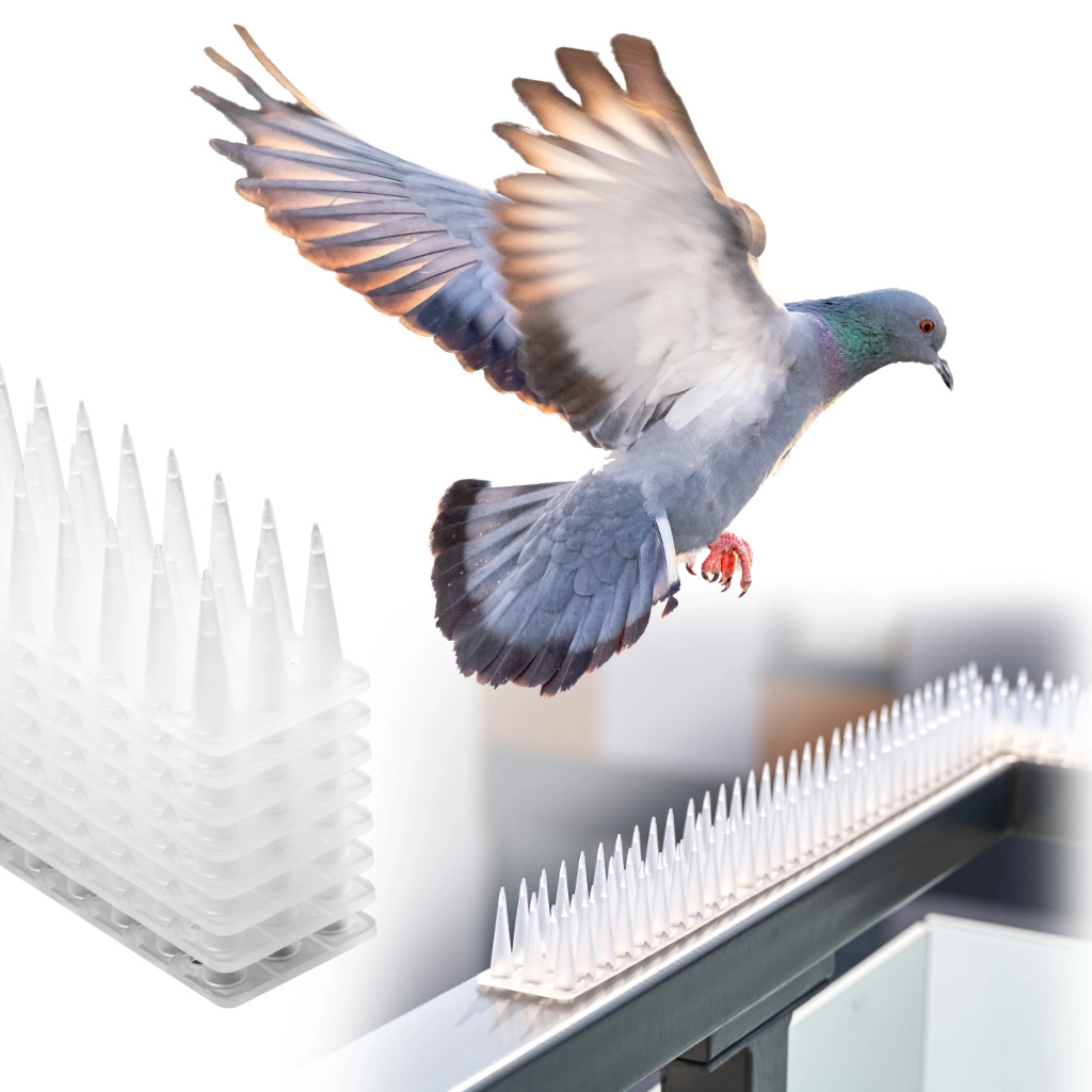 Den tætte placering af spidserne forhindrer fugle i at lande uden at gøre dem skade. Ideel til duer og andet byfugleliv.