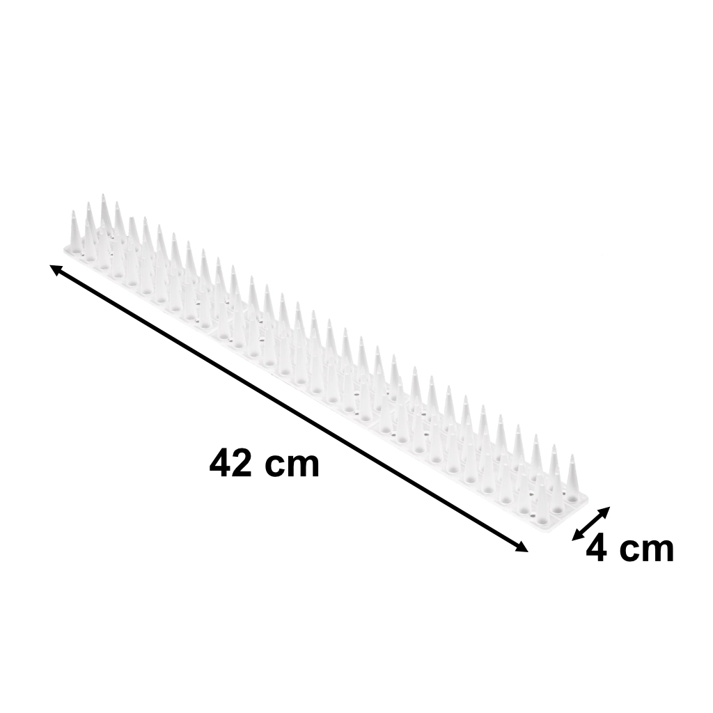 Praktiske og diskrete spidser mod duer forhindrer effektivt fugle i at lande på udsatte steder. Takket være den tætte placering af spidserne mister fuglene støtteflader, så de undgår dine vindueskarme, gesimser og rækværk. Plastudførelsen er vejrbestandig og samtidig let, så den ikke belaster underlaget.