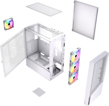 Fornax 4300 er et hvidt midi tower-kabinet designet til gamere og krævende brugere, der ønsker fremragende luftgennemstrømning, effektfuld ARGB-belysning og nem montering. Front- og top-meshpaneler understøtter intensiv luftstrøm, mens fire forinstallerede ARGB-blæsere holder komponenterne ved optimale temperaturer selv under lange spilsessioner.
