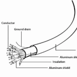 Detaljeret diagram viser kablets indre struktur, inklusive leder, isolering og beskyttende kappe.