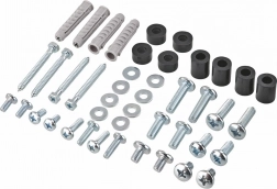 Pakken indeholder monteringsudstyr som Fischer-rawlplugs og libelle for hurtig og enkel opsætning.
