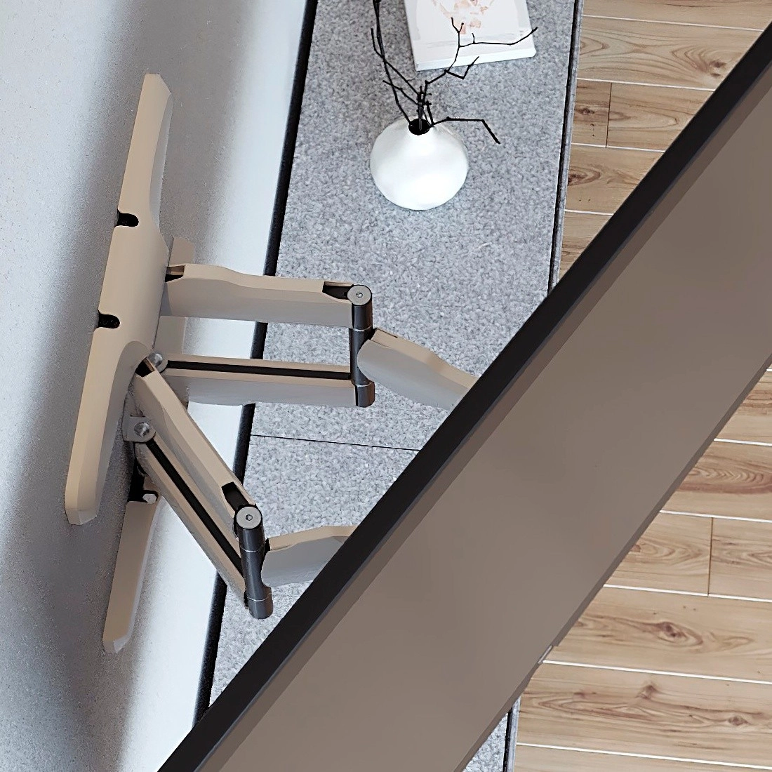 Det muliggør tilt i området +2° til -10° og rotation op til 120°, hvilket er ideelt for at sikre den bedste betragtningsvinkel fra forskellige steder i rummet. Beslaget er fremstillet af robust stål, som sikrer en sikker montering.