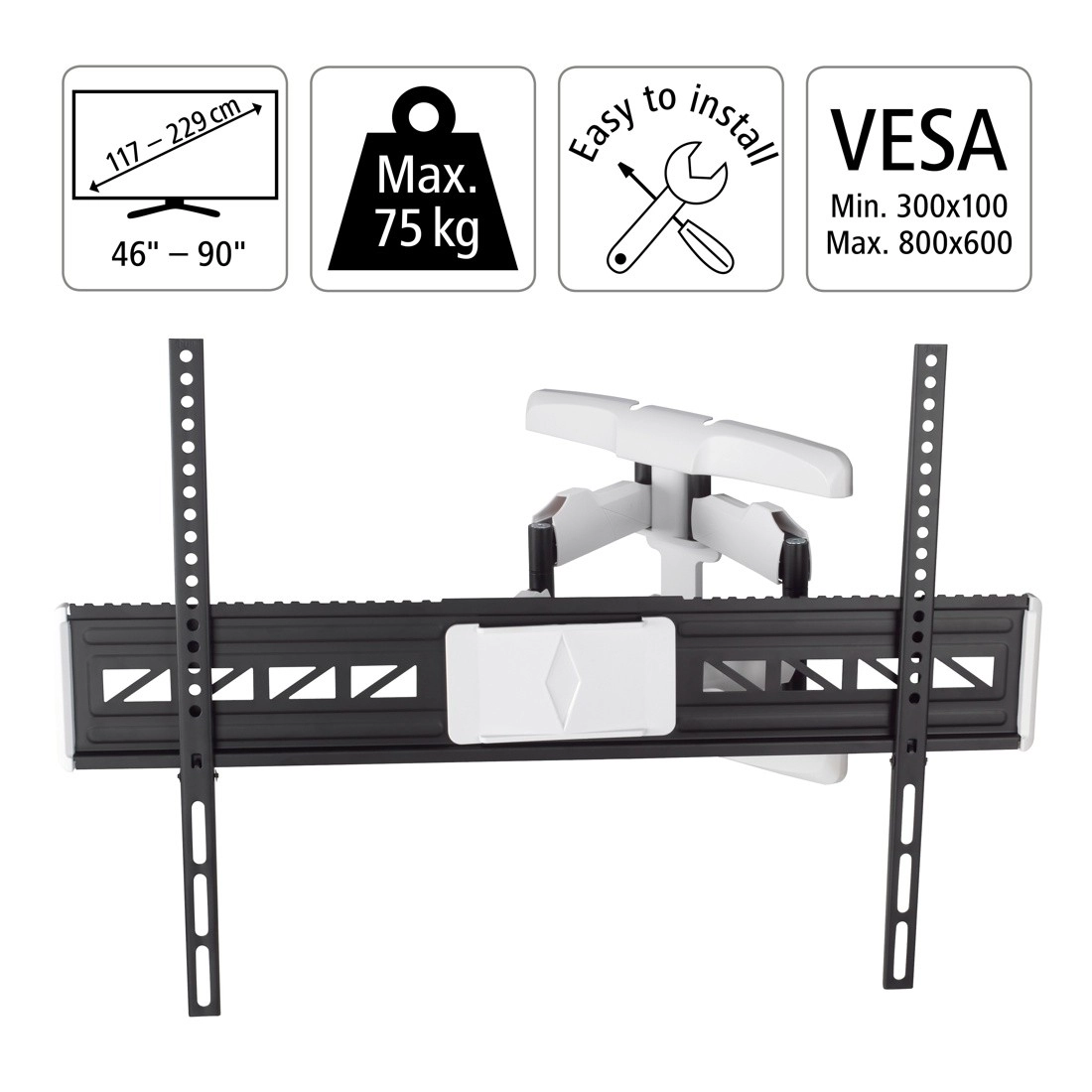 TV-beslaget Hama Fullmotion XL er det ideelle valg for alle, der søger en stabil og fleksibel løsning til montering af TV. Takket være kompatibilitet med VESA-standard fra 300x100 til 800x600 mm passer det til en lang række TV’er.