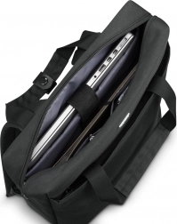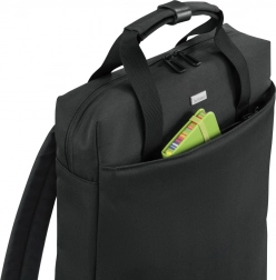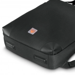Den rummelige forlomme med overskuelig organisator rummer kabler, telefon og småting. Hovedrummet fastholder sikkert laptoppen med en elastisk velcrostrop.