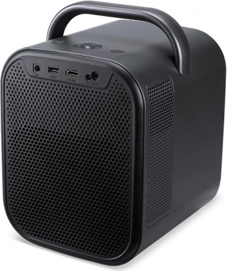 AOPEN QF16ATV er en bærbar projektor designet til både underholdning og arbejde. Det kompakte kabinet med øverste håndtag gør den let at transportere, og den kraftige lysstyrke på 550 ANSI lumen samt Full HD-detalje gengiver film, sport og præsentationer med imponerende skarphed. Frontgitteret skjuler integrerede højttalere for fyldig lyd uden behov for et eksternt audiosystem.