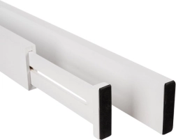 Skuffeorganisatoren hvid Ruhhy bringer en revolution til opbevaringsløsninger. Denne organisator, lavet af kvalitets bambusmateriale, sikrer lang levetid og holdbarhed mod dagligt brug. Takket være dens justerbare længde fra 42 til 56 cm tilpasser den sig enhver skuffe og muliggør nem organisering af små genstande.