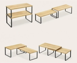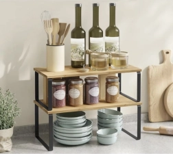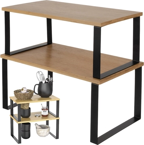 Med dette hyldesæt organiserer du dit køkken praktisk og stilfuldt. Bambusmaterialet sikrer styrke og stabilitet, mens den metalforstærkede ramme giver lang levetid og holdbarhed.