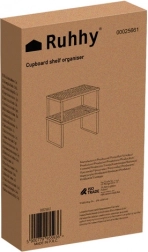 Denne Ruhhy bambus køkkenhylde byder på fugtbestandighed og absorberer ikke lugte, hvilket gør den ideel til opbevaring af dine krydderier og fødevarer. Det elegante design kombineret med en sort metalramme giver dit køkken et moderne og naturligt udtryk.