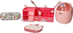 Plastikbeholderen med et sødt enhjørningemotiv fuldender dit skrivebord perfekt.