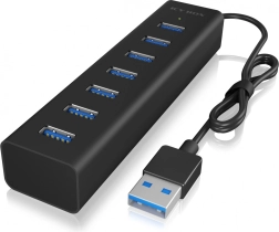 Den praktiske og kraftfulde ICY BOX USB-hub forvandler én USB Type-A-port til syv hurtige USB 3.0-porte. Takket være ekstern strøm kan den samtidigt drive strømkrævende periferiudstyr – fra eksterne drev til kortlæsere og webkameraer – uden udfald eller reduceret ydeevne.