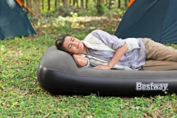 Den praktiske oppustelige madras BESTWAY Tritech giver komfortabel og stabil søvn hjemme og på farten. Takket være Tritech-teknologien og I‑Beam-konstruktionen er den modstandsdygtig over for udvidelse og deformation, har en integreret pude for ekstra komfort og en USB‑pumpe til hurtig oppumpning på ca. 3 minutter. Den bløde velouroverflade er behagelig at røre ved og let at rengøre.