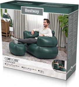 Den stilfulde og komfortable oppustelige lænestol BESTWAY er ideel til afslapning hjemme og udendørs. Den tilbyder ergonomisk konstruktion, fløjlsoverflade for blød siddekomfort og er lavet af holdbart PVC for lang levetid. Takket være den sammenklappelige og lette konstruktion er den nem at transportere, puster hurtigt op og passer problemfrit ind i stuen, soveværelset eller på terrassen.