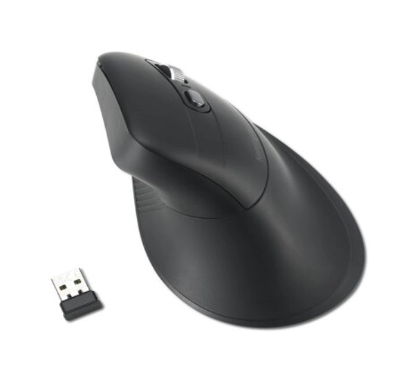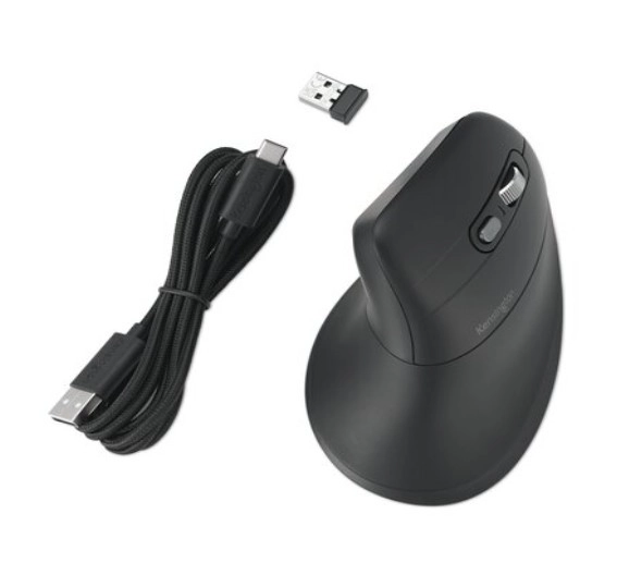 Den ergonomiske vertikale mus Kensington Pro Fit er formet til at holde håndleddet i den korrekte position og give komfort ved langvarig brug. Den er fremstillet af materialer, der indeholder 55 % genanvendt plastik. Kompatibel med Windows, macOS og Chrome OS.