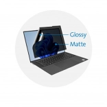 Filteret beskytter ikke kun de viste oplysninger mod uvedkommende indblik, men reducerer også eksponeringen for skadeligt blåt lys med op til 22 %. Derudover mindsker det refleksioner og forbedrer skærmens klarhed. Det er dobbeltsidet – vælg mellem mat eller blank overflade efter din præference.