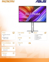 ASUS ProArt Display PA278CFRV er designet med fokus på professionelt indholdsarbejde. Dækning på 95 % DCI-P3 og 100 % sRGB sikrer nøjagtig farvegengivelse, ideel til fotografer og videoeditorer. Hver skærm er fra fabrikken kalibreret med en nøjagtighed på Delta E < 2 og er Calman Verified-certificeret.