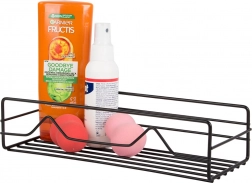 Monteringen er hurtig og ren: selvklæbende kroge gør det muligt at fastgøre på glatte overflader uden boring; alternativt kan hylden også monteres med skruer (valgfrit). Takket være de universelle mål er den velegnet til kosmetik, showergels, krydderier, te og små tilbehør i køkken eller entré.
