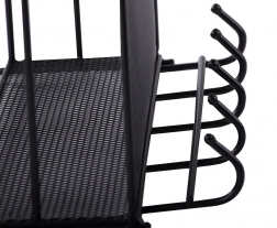 Det minimalistiske, sorte design passer til både moderne og klassiske interiører, og den robuste metalkonstruktion garanterer stabilitet og lang levetid. Den åbne gitterkonstruktion sikrer luftcirkulation, hurtig tørring og god synlighed af opbevarede ting.