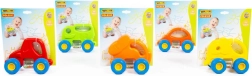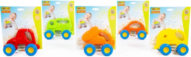 Den søde bil i kaninform er designet til sikker og stimulerende leg for de mindste. Takket være gummihjulene med groft mønster er kørslen stille og jævn på forskellige overflader. Den cylindriske beholder med farvede kugler rasler behageligt under bevægelse og udvikler høresansen.