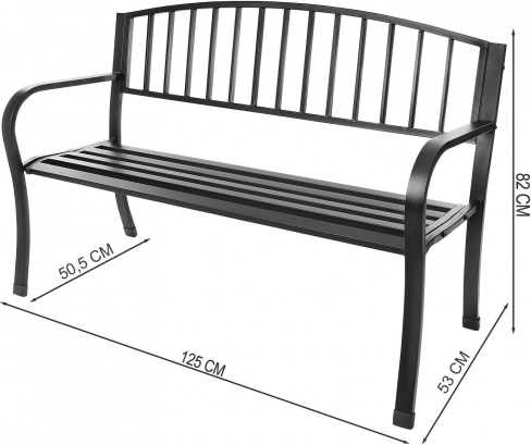 Denne stilfulde parkbænk kombinerer et tidløst design med praktisk holdbarhed til brug hele året. Takket være det ergonomiske ryglæn nyder du behagelig siddekomfort ved læsning, afslapning og længere hyggestunder med familien. De minimalistiske linjer og den sorte finish passer perfekt til moderne terrasser, romantiske altaner og grønne hjørner i haven.