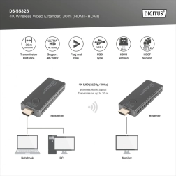 Trådløs HDMI‑extender Digitus UHD 4K/30 Hz, 30 m (sæt)