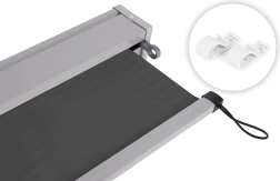 Nedre fastgørelse:Takket være de medfølgende komponenter og de elastiske stropper på markisens underkant kan du fastgøre enderne af den udrullede markise til væggen. Denne funktion sikrer stabilitet, især i blæsende vejr.