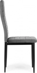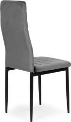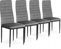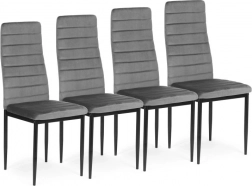 Sættet med fire polstrede stole er et elegant og moderne indslag i enhver indretning. Stolene giver fremragende komfort takket være det formede ryglæn og den højkvalitets skumpolstring. De er udstyret med lige, sorte metalben for optimal stabilitet og et moderne design.