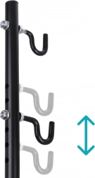 Højdejusterbare kroge gør det muligt præcist at tilpasse holderen til forskellige rammer og geometrier. Kvalitetsmaterialer og holdbar udførelse sikrer lang levetid og tryghed ved daglig brug både hjemme og i værkstedet.