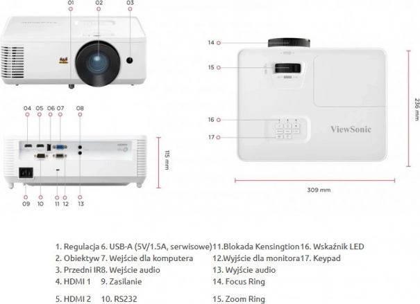 - 1x VGA, 1x 3,5 mm lydjack, 1x USB Type-A (strøm 5V/1,5A)