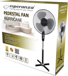 Nyd en frisk brise med ventilatoren ESPERANZA HURRICANE, der med sit moderne udseende passer let ind i enhver indretning. Sikkerheden sikres af et tæt for- og baggitter, der har bestået en “børnefinger-test”. Den stabile krydsbase med skridsikre endestykker holder ventilatoren sikkert på plads, selv ved længere tids drift.