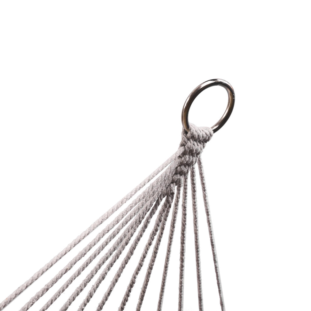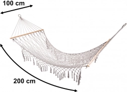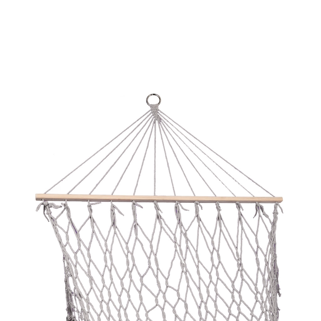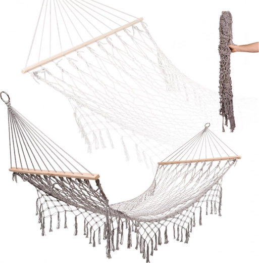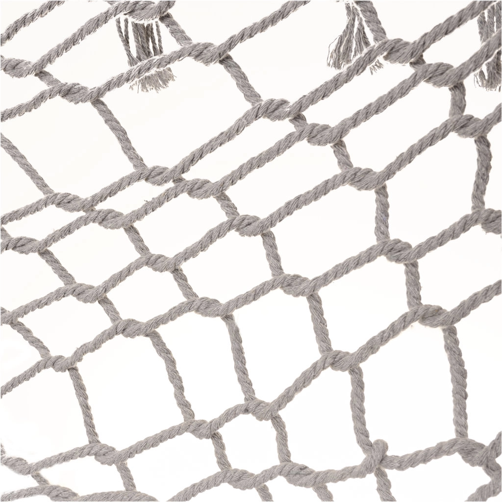 Lavet af kvalitetsbomuldsfibre (65%), der sikrer høj styrke og en bæreevne på op til 250 kg. Med de elegante frynser og grå farve passer den perfekt ind i enhver have.