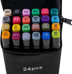 Dette alsidige sæt er et fremragende valg for både begyndere og øvede – arkitekter, illustratorer, grafikere og kreative hobbyfolk. Med de to spidser skifter du nemt fra store flader til fine detaljer og skaber rene linjer og jævne overgange. Det praktiske tekstiletui og det plastiske stativ holder alle tuscherne overskuelige og lige ved hånden derhjemme, i skolen og på farten.