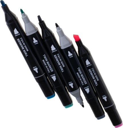 Hver markør har en bred og en fin spids, så du nemt kan udfylde store flader og samtidig tegne præcise linjer.