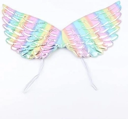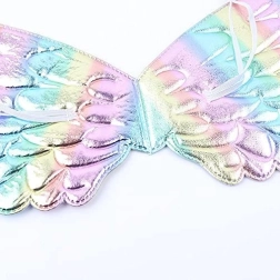 Regnbuevingerne fastgøres nemt med elastiske stropper, hvilket giver fri bevægelighed. Vingernes farver udstråler magien fra en ægte enhjørning.