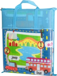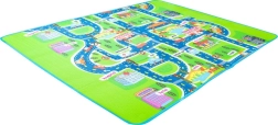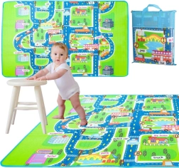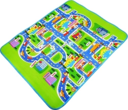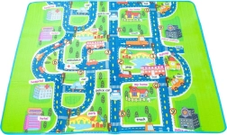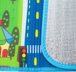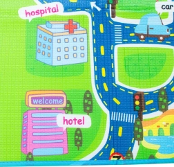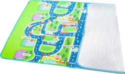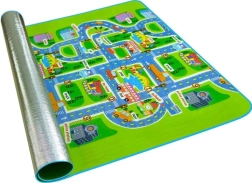 Den ensidede legetæppe med bymotiv giver børnene et sikkert sted at lege. Isolerer mod kulde og beskytter mod hårde stød. Måtten er let at transportere takket være det termo-isolerende lag på undersiden.