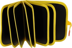 Bogen åbnes som et etui og holdes sikkert lukket med velcro. Let og kompakt – perfekt til rejser og underholdning på farten.