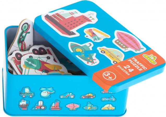 Puslespillet er praktisk at opbevare og transportere takket være metaldåsen, hvilket gør det ideelt til rejser. Dette produkt er ikke kun underholdende, men også lærerigt og fremmer udviklingen af børn.