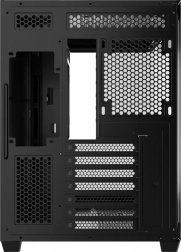 Fremragende design: Det buede hærdede glas giver fuldt overblik over de interne komponenter og tilfører computeren et æstetisk imponerende udseende. Det sammenhængende glas i ét stykke øger både elegance og modernitet.