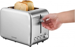 Brødristeren kan prale af skridsikre fødder og en krummebakke for enkel rengøring.