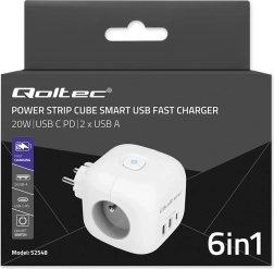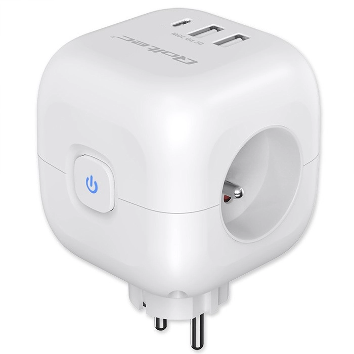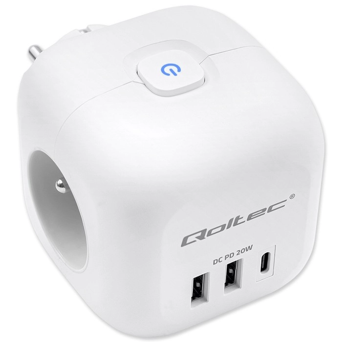 Pladsbesparende design af strømkuben muliggør nem organisering af 3 AC-stik på siderne for bekvem tilslutning, selv af større stik. På fronten er der 2 USB-A-porte og 1 USB-C PD 20W port, så du nemt kan oplade telefon, tablet eller hovedtelefoner uden at skulle bruge ekstra opladere.
