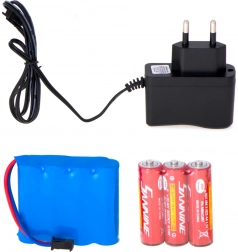 Medfølger: 4,8 V 700 mAh akkumulator, netoplader samt batterier til controlleren (3× AA). Det er bare at pakke ud og køre.