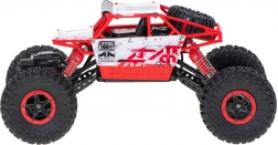 Takket være 2,4 GHz-frekvensen kan du køre samtidig med flere biler uden indbyrdes forstyrrelser. Det robuste chassis, bløde gummidæk med dybt mønster og fleksibel affjedring klarer ujævnheder og forhindringer. På en opladning kan du køre i cirka 15 minutter, opladning tager 3–4 timer.