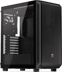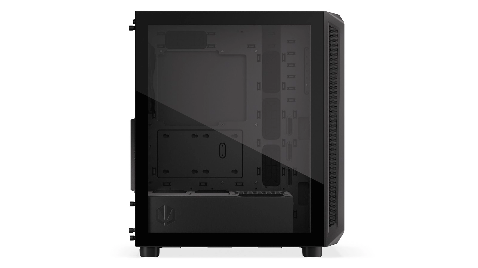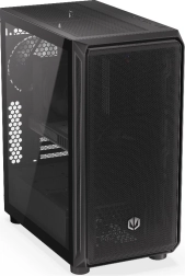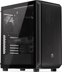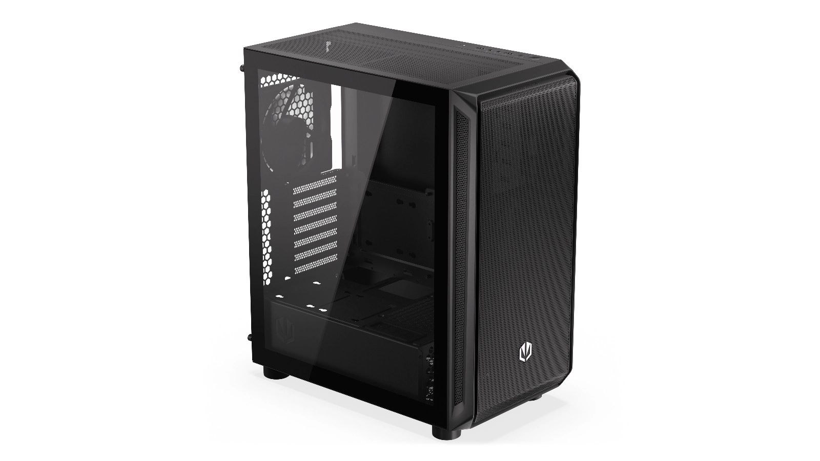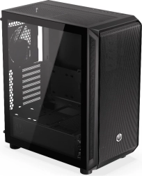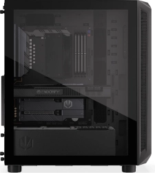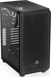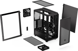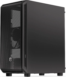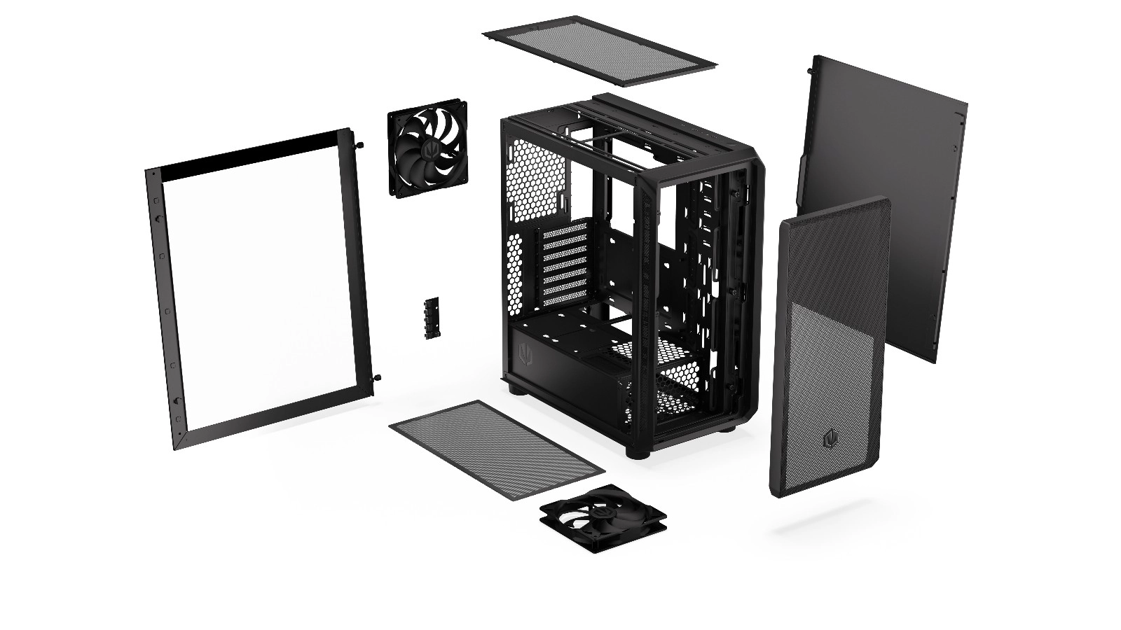 Hærdet glas og skjulte kabler: Sidepanel i hærdet glas giver et fremragende kig til farverige RGB‑komponenter. Kabelstyring sikrer et rent look og bedre luftgennemstrømning.