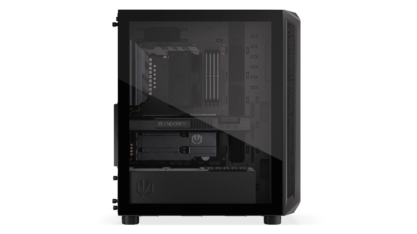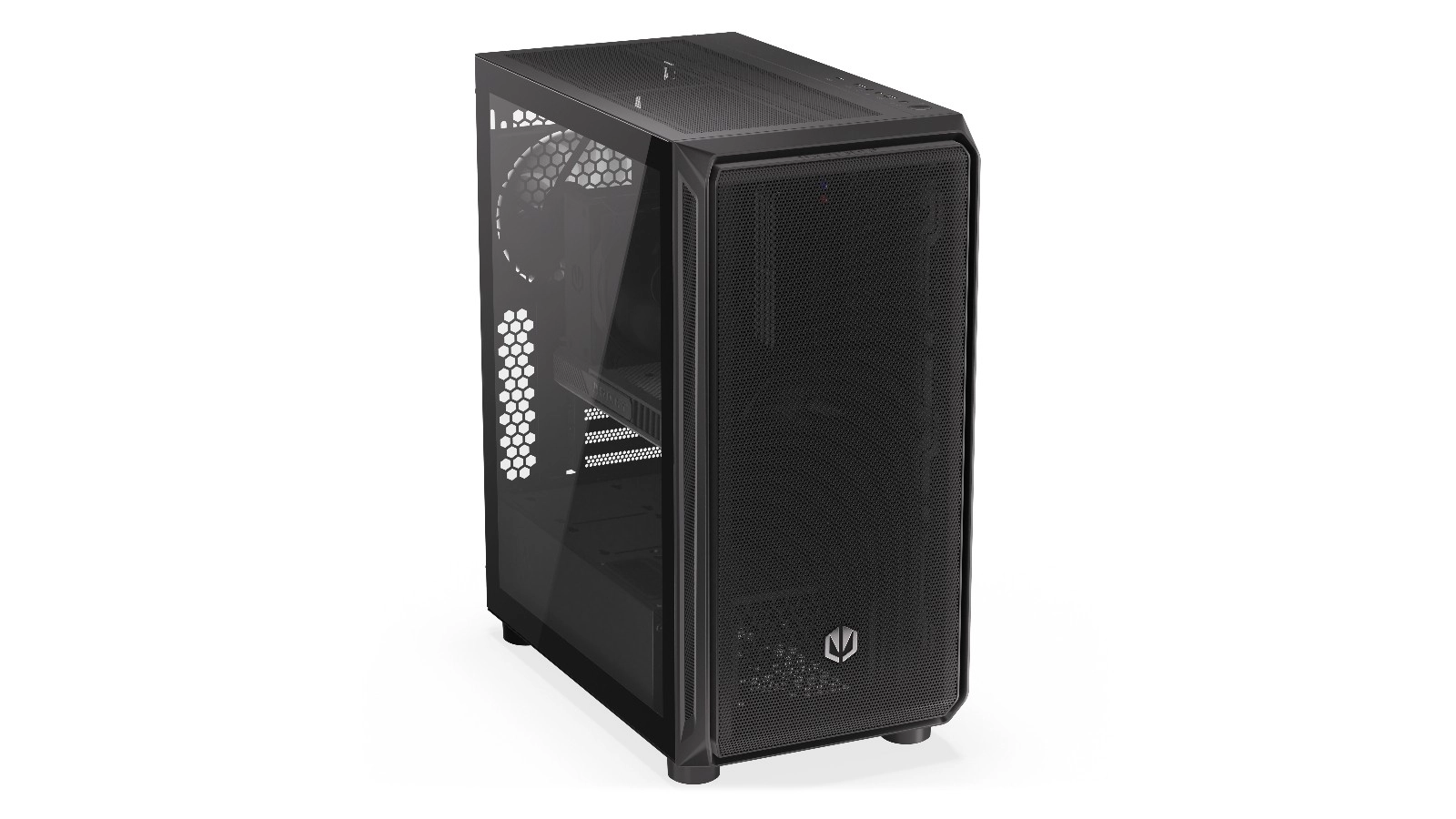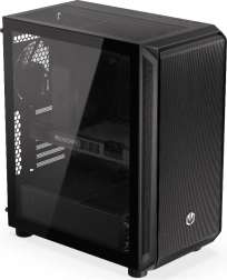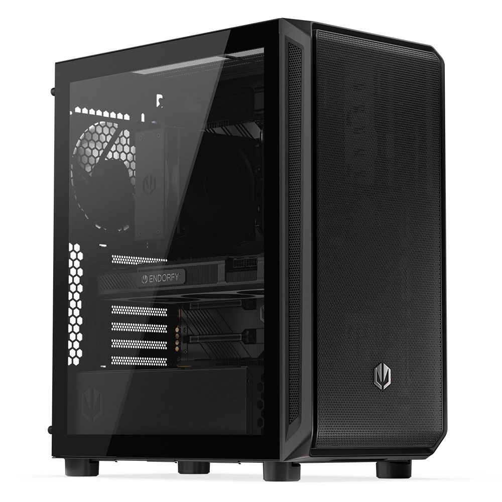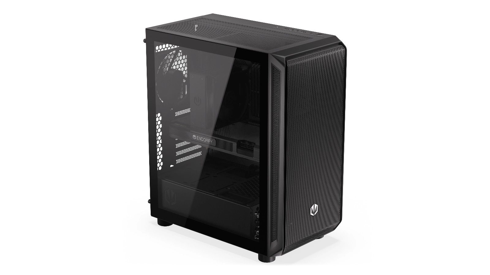 Hærdet glas og skjulte kabler: Sidepanel i hærdet glas giver et fremragende kig til farverige RGB‑komponenter. Kabelstyring sikrer et rent look og bedre luftgennemstrømning.