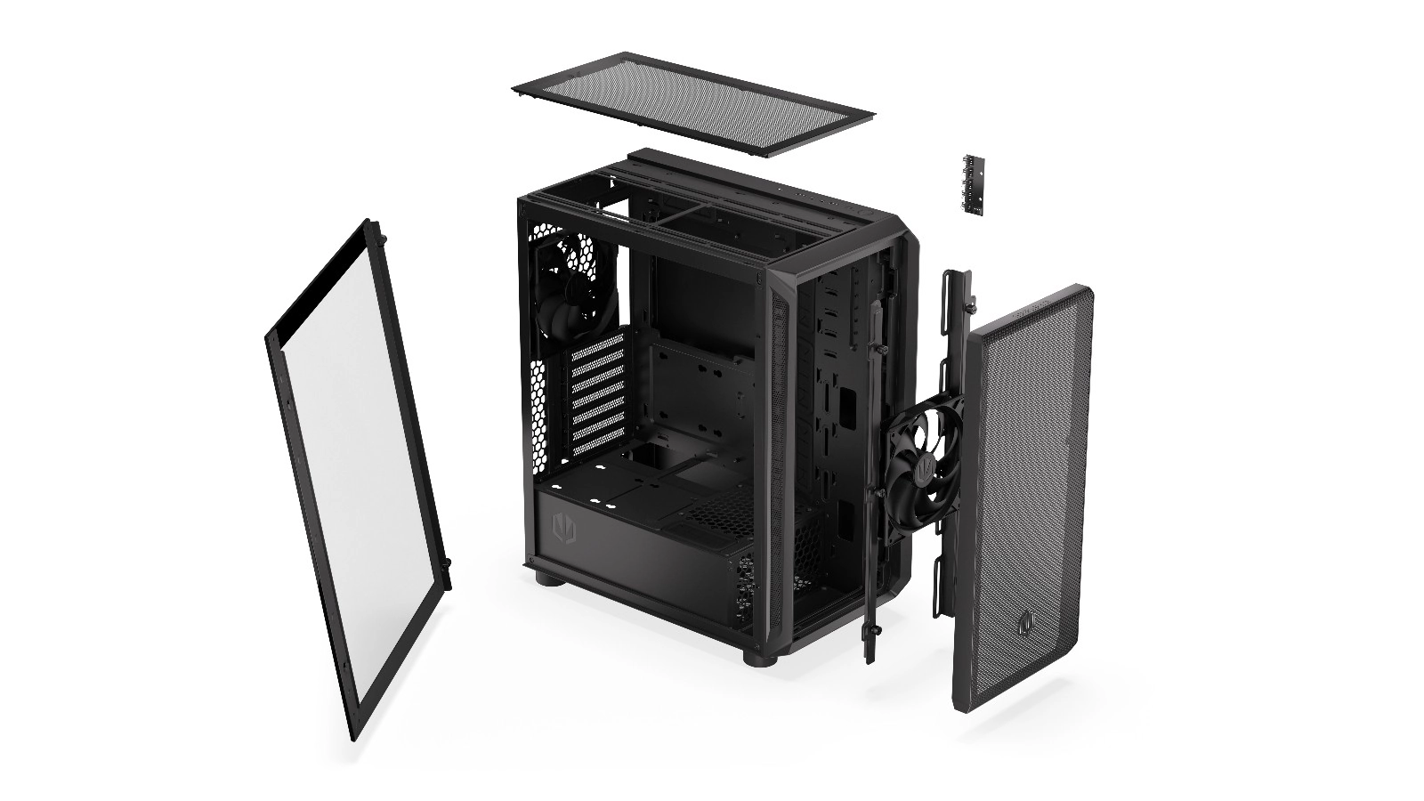 • Rummeligt interiør: Velegnet til grafikkort op til 350 mm, strømforsyninger op til 300 mm og understøtter kølere op til 360 mm.