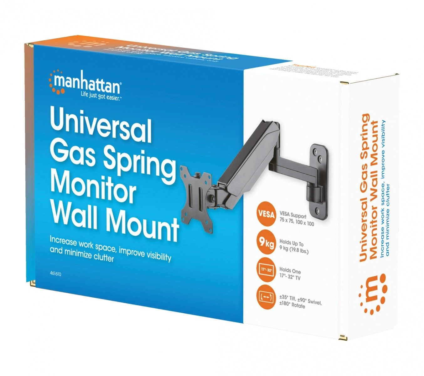 Det universelle Manhattan-skærmbeslag med gasfjeder tilbyder en enkeltleddet arm, der gør det lettere at flytte skærmen til en mere behagelig betragtningsvinkel med minimal anstrengelse.