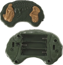 Fossilformet controller med to knapper: én til gang og bevægelse af forben, den anden til lys, lyd og hovedbevægelser.