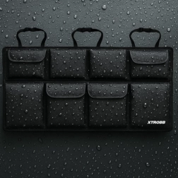 Nyd enkel og problemfri montering med XTROBB bilsæde-organizer. Fastgør den blot til nakkestøtterne og hold den mod sædet med velcro – alt på kun 5 sekunder. Universelle stropper sikrer, at den passer perfekt i de fleste personbiler, SUV’er og stationcars. Sammenfoldet er den kompakt, let og passer i en sidelomme i bagagerummet eller i et handskerum. Takket være det vandafvisende materiale er indholdet beskyttet mod fugt og snavs, selv hvis du spilder vand.