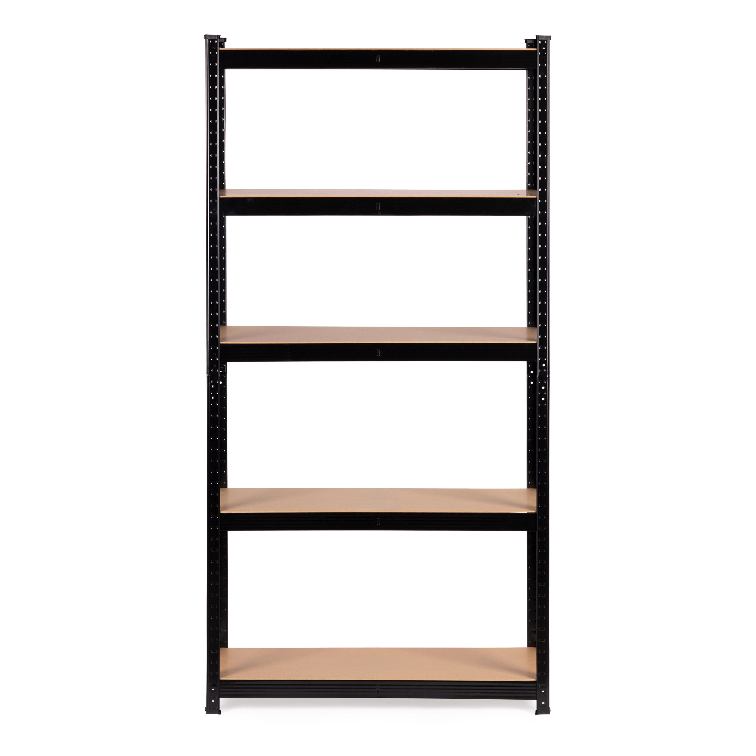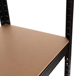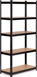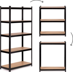Reolen har 5 robuste hylder, som kan monteres i enhver højde, hvilket gør det muligt at tilpasse indretningen efter dine behov. Konstruktionen er forstærket med en ekstra midterbærer under hver hylde for at sikre stabilitet.